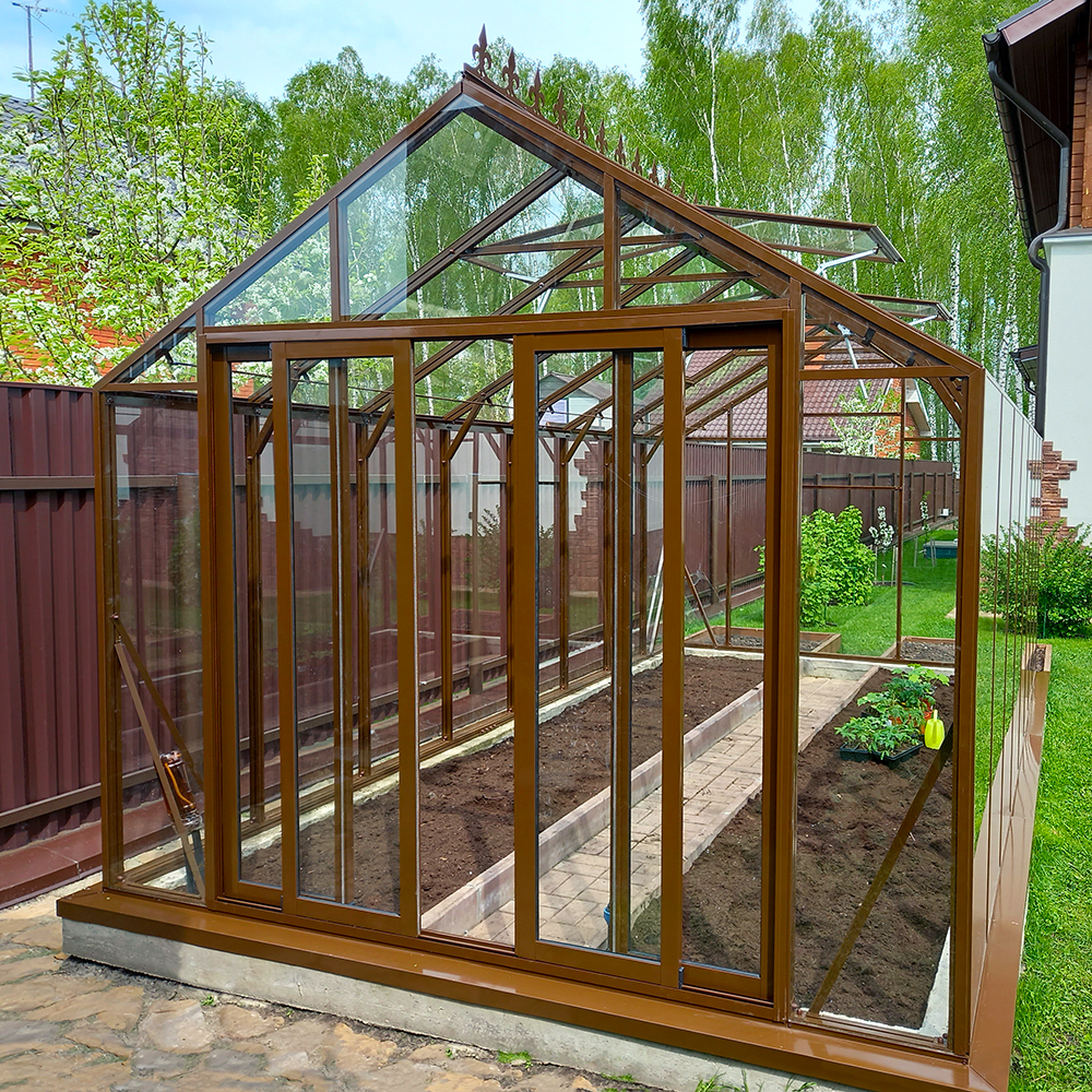 Грамотно спроектированные параметры и высокие прямые стенки, делают эту модель оптимальным вариантом садовой теплицы. Конструкция достаточно просторна для размещения 3х рядов грядок и комфортна для высадки высокорослых садовых культур. BIONIKA Classic одна из самых популярных наших моделей.