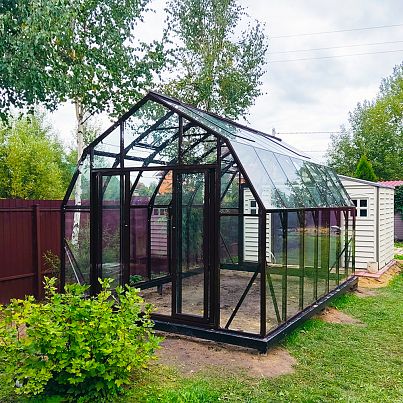 Красивая теплица CRISTALIKA Comfort с увеличенным объемом внутреннего пространства для размеров садовой теплицы. В качестве покрытия может использоваться закаленное стекло, которое, помимо собственной прочности, добавляет прочность и конструкции целиком, что в сочетании с достаточно жестким каркасом, делает эту теплицу пригодной для использования в любом регионе России без ограничений.