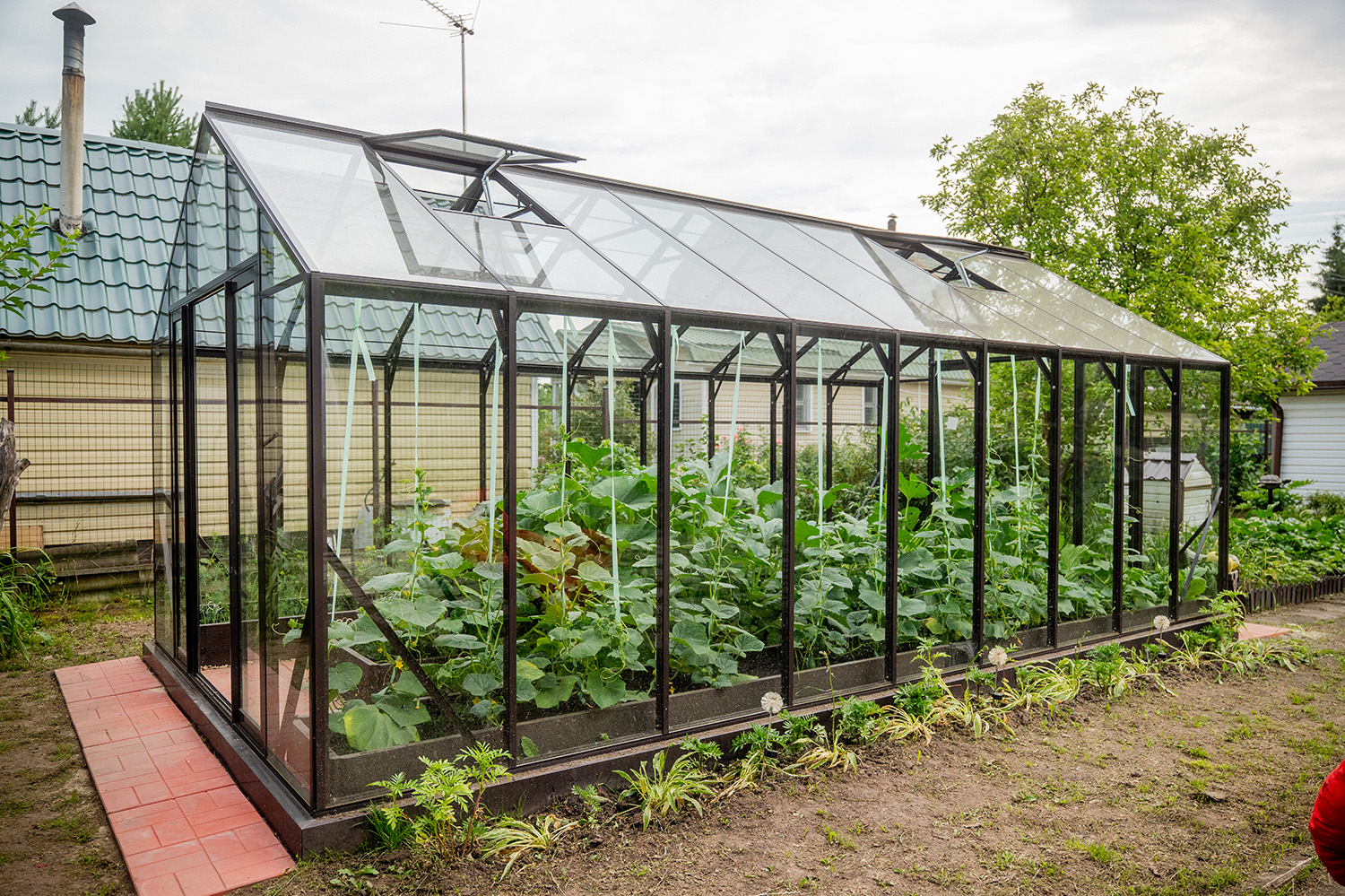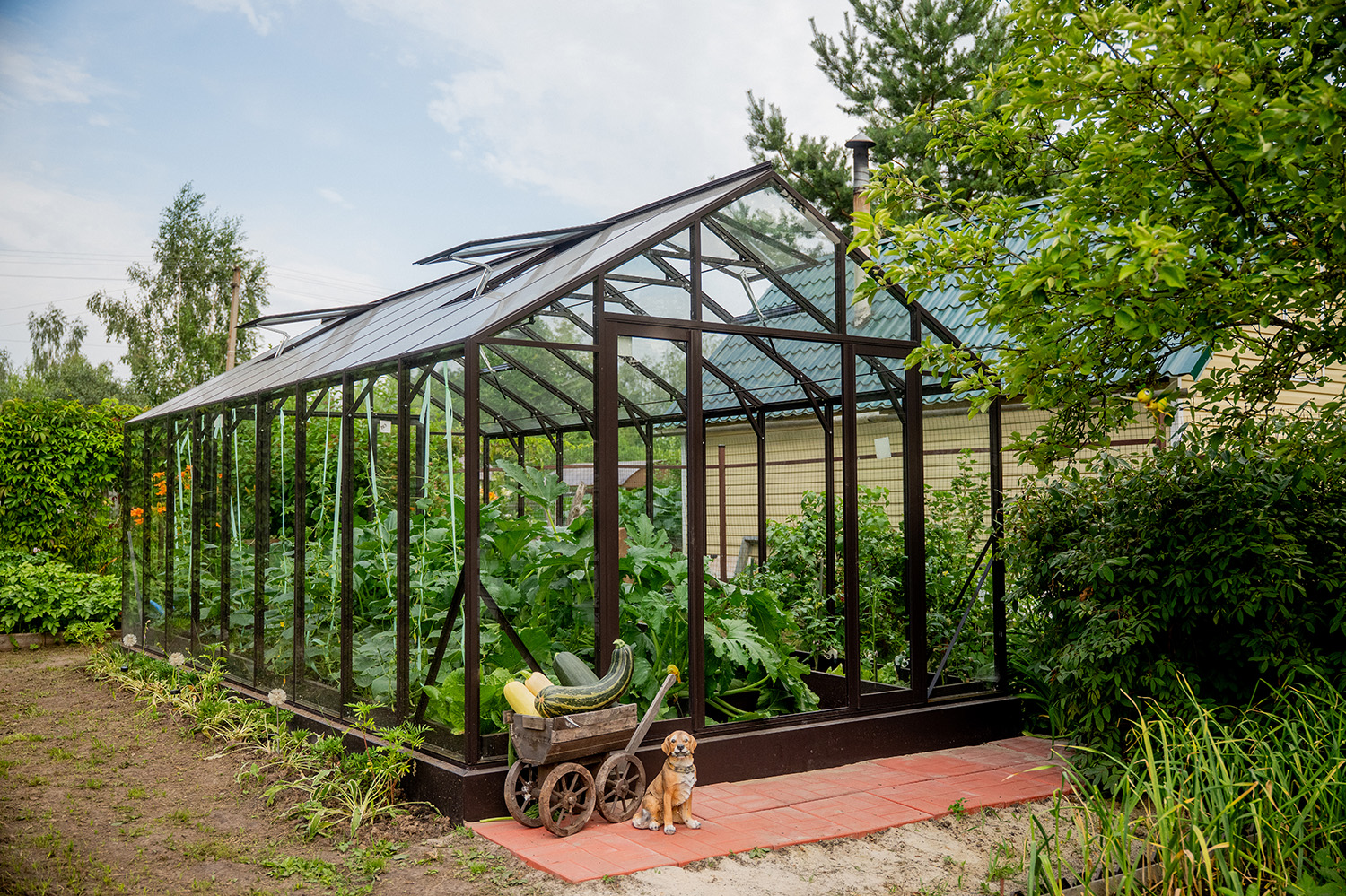 Теплица БИОНИКА на участке Анны Семенович – сочетание эстетики английской архитектуры и практичного пространства для выращивания. Теплица органично вписалась в участок, сохранив лёгкость и ощущение открытого пространства, при этом активно используется для стабильного роста растений и комфортной работы в течение всего сезона. Это проект, где теплица становится частью архитектуры и образа загородной жизни.